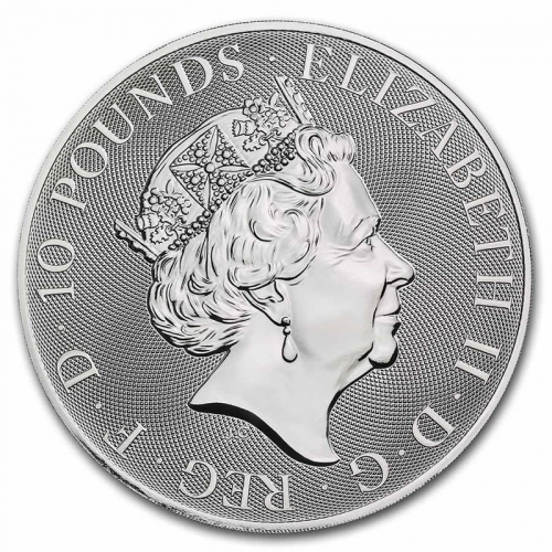 • В девятом выпуске монет «Звери серебряной королевы» весом 10 унций изображен один из царственных геральдических зверей — Белая лошадь Ганноверов. В 1714 году правитель германского герцогства Ганноверского Георг Людвиг унаследовал престол Великобритании как Георг I. Он принес с собой геральдику региона, в том числе старинный символ белого коня на красном фоне.