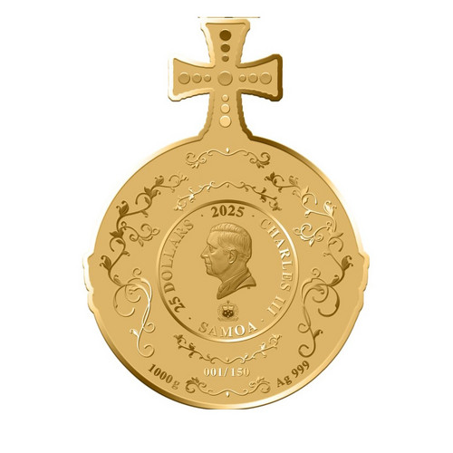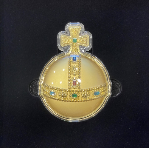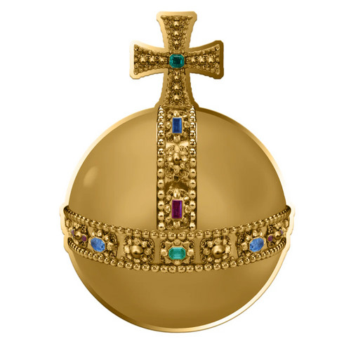 Крест на сфере символизирует христианский мир, а полосы хрустальных вставок, разделяющие сферу на три части, указывают на три континента, известные в средние века.