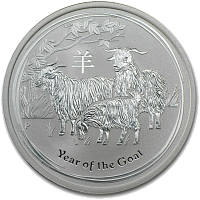 На реверсе монеты изображено стадо коз, пасущихся на лугу; китайский иероглиф, обозначающий символ "коза", текст полукругом "Year of the Goat" и традиционное клеймо "P" Австралийского монетного двора The Perth Mint.