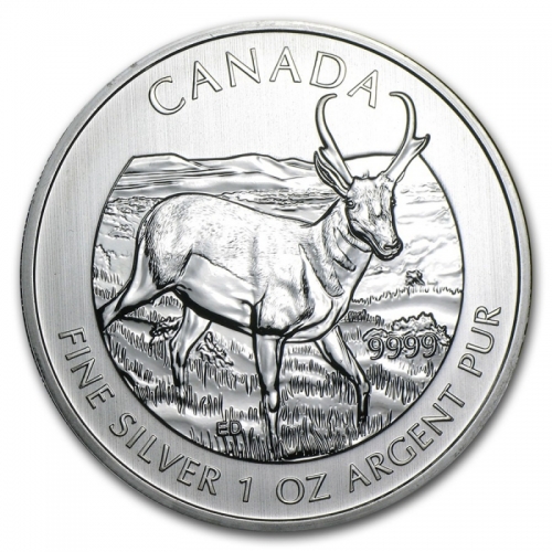 Серебряная монета Канады 5 долларов "Антилопа" 1oz,31,1г.,Ag 9999, 2013 год