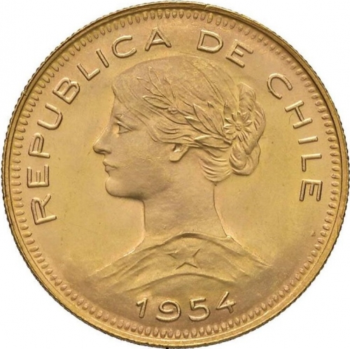 Золотая монета 100 песо Чили, 20,34 г