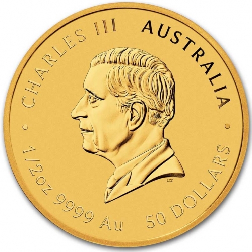 Золотая монета из серии "Лунный календарь - III" от Пертского монетного двора Австралии весом в 1/2 тройскую унцию посвящена символу 2025 года - Змее.