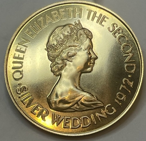 Золотая монета 50 фунтов "25-летие свадьбы Елизаветы II и принца Филиппа" 1972г., Au 917, 22,760г.