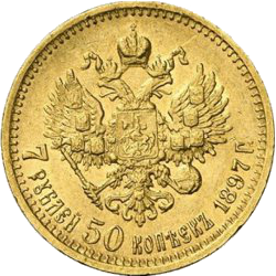 Золотая монета 7 рублей 50 копеек 1897 Николай II