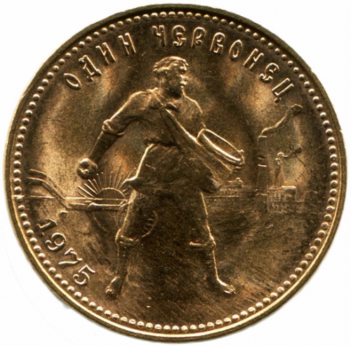 Монета золотой червонец Сеятель была запущена в чеканку в период финансовой реформы 1920-х годов. Создание эскиза изображения было поручено главному художнику Монетного двора, который разработал для червонца изображение крестьянина в процессе работы. Впервые такой образец был выпущен в 1923 году. При этом использовались все стандарты, разработанные еще в царские времена. Изначально монета использовалась лишь для совершения международных финансовых операций и находилась в обиходе исключительно городских жителей.