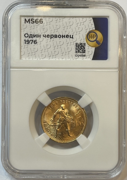 Золотая монета Червонец Сеятель 1976г., в слабе ННР MC 66