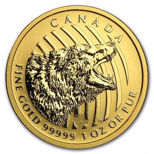 Золотая монета Канады "Рычащий Гризли" 200 долларов 2016 год 31.1 грамм